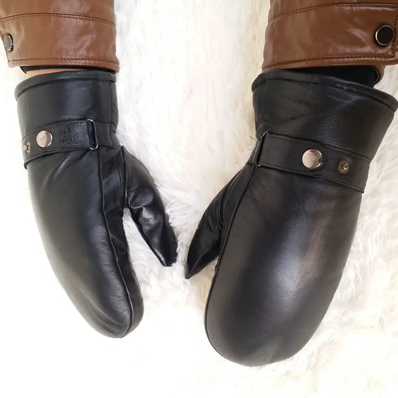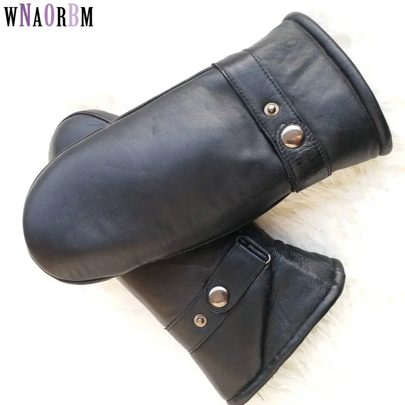 Men sheepskin gloves genuine leather glove for men winter Outdoor warm fur thickening thermal glove